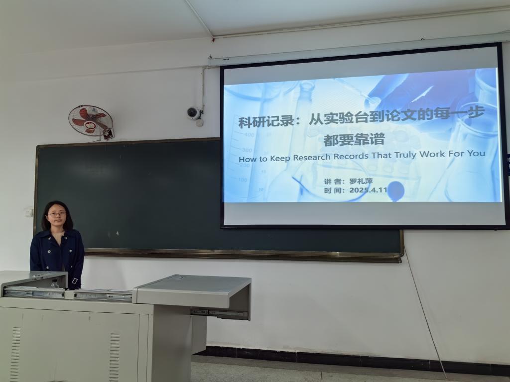 2025 年 4 月 11 日,304永利集团登录入口生物与医药专业学位研究生科研素养讲堂正式开讲。本次讲座邀请罗礼萍博士,以“如何做好科研记录”为主题,为科研人员带来了一场干货满满的分享。