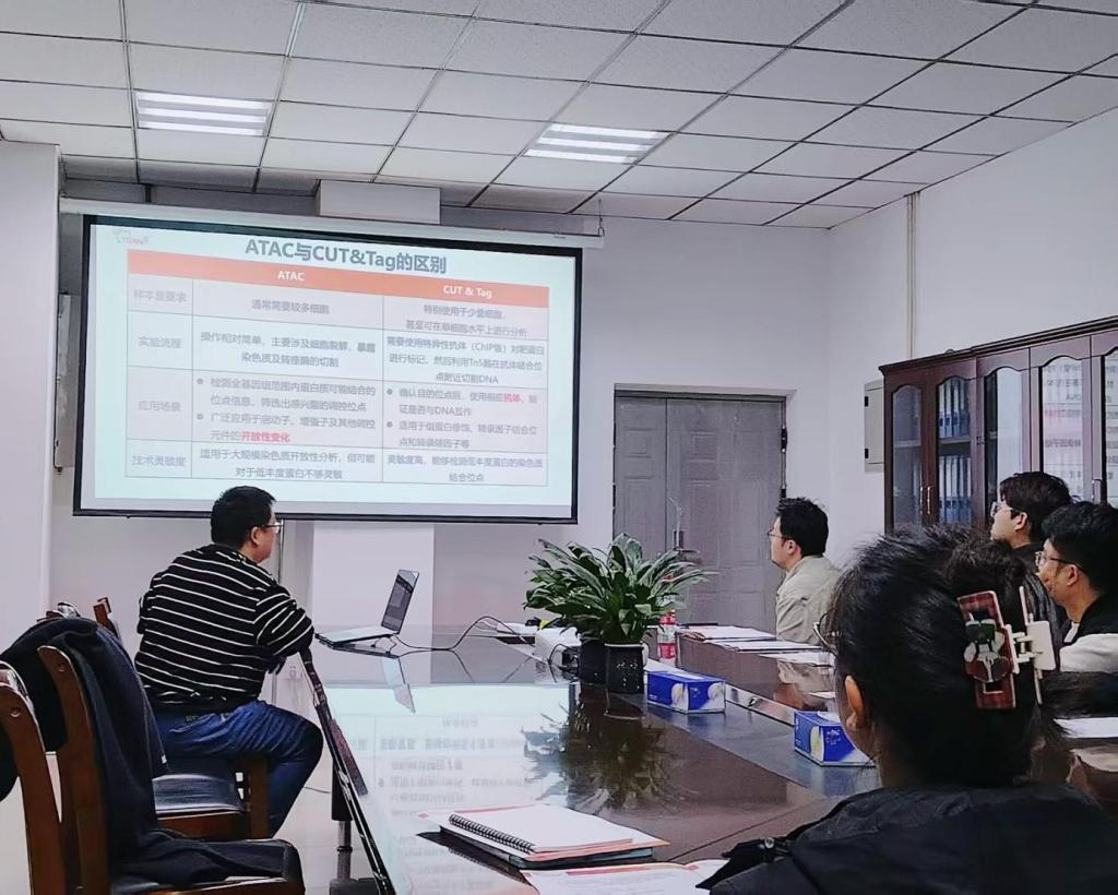 本次培训采用“理论+实操”一体化模式。全式金公司技术部部长张晓宏博士、渠道技术支持王超工程师围绕ATAC-seq与CUT&Tag的实验原理设计、操作步骤流程、关键质控指标、生信分析流程等核心环节进行了系统讲解,并现场指导学员完成从细胞固定、Tn5转座酶靶向剪切到Illumina文库扩增的全流程。参训员工以50000个哺乳动物细胞为起始样本,成功构建出峰形锐利、信噪比高的测序文库,验证了方案的可行性与稳定性。