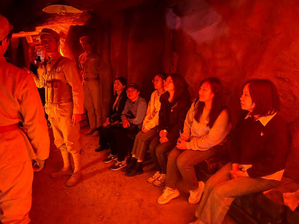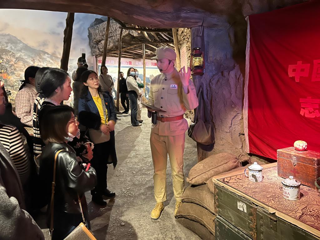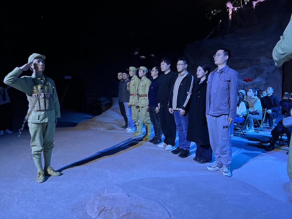 此时,全体成员来到孤胆英雄胡修道的家乡金堂县、来到星光1953沉浸式剧场,在郑向辉“指导员”的带领下,以胡修道的队友的身份身临其境地了解了他只身参军的决心,抗战现场队友阵前牺牲的悲壮,感动于他孤身退敌、誓死不屈的革命精神。大家深受感动、倍受激励。郑副书记表示,设身处地的看完胡修道的参军及抗战表演,让大家感悟到抗战胜利的来之不易,相比较先辈们抗战的艰辛,我们如今工作辛苦不值一提,更加应该学习先辈们的革命精神,继承先辈们宁死不屈的革命意志,在工作中继续奋进。
