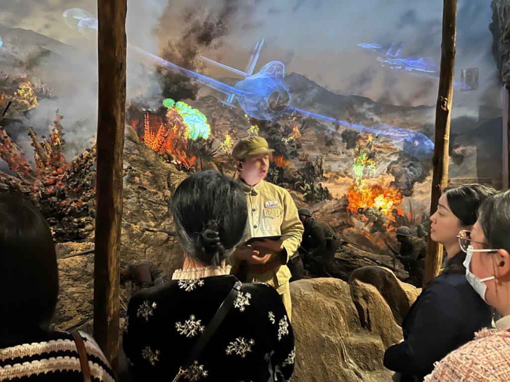 大家在指导员的带领下沉浸式观看了全息投影和实景搭建的抗战现场,身临其境地感受了战场的激烈与残酷。在抗美援朝中,四川人民也高度发扬了爱国主义、国际主义和革命英雄主义精神、涌现出了大批英雄、模范和功臣65人,有战斗英雄黄继光、孤胆英雄胡修道等,他们用自己的热血创造了一桩桩可歌可泣的英雄业绩,用壮丽的青春铺就了通往胜利的道路。