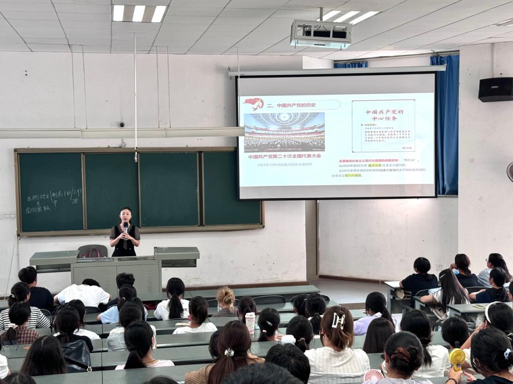 杨雨晗对如何端正入党动机进行重点强调,并详细介绍了党员发展的5个阶段25个程序内容,细致指导了入党申请书的书写。最后,她从政治上、思想上、行动上、学习上、生活上、创先争优上等方方面面提出了自己的期许,鼓励新生在学习生活中朝乾夕惕,披荆斩棘,不忘初心,砥砺前行,争取早日加入党组织。