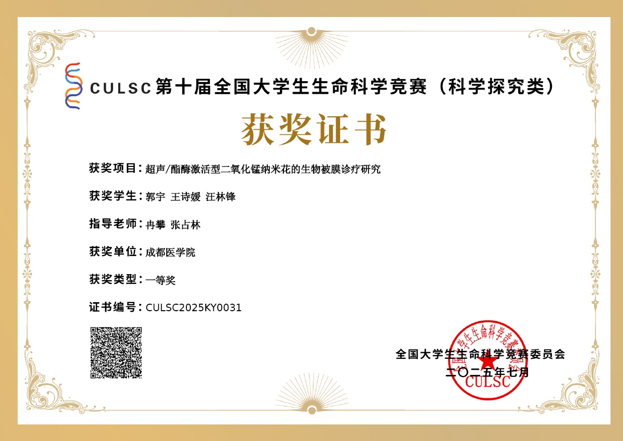 超声/酯酶激活型二氧化锰纳米花的生物被膜诊疗研究 |