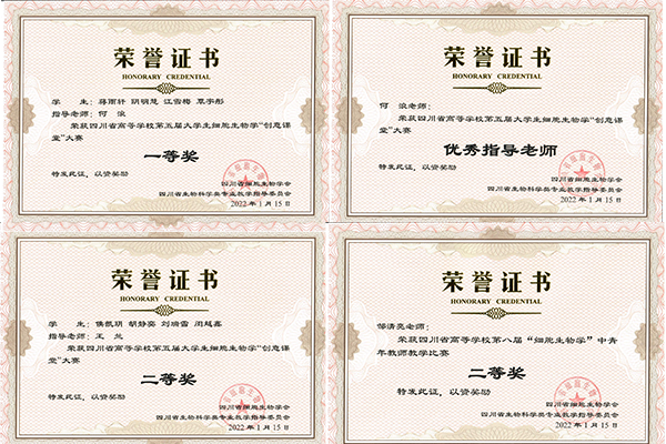 经过精心准备和不断打磨,公司青年教师邹清亮最终荣获“四川省第八届高等公司细胞生物学中青年教师教学比赛”二等奖。 自2015年以来,公司青年教师已连续5年参赛获奖。同时,在“第五届老员工细胞生物学‘创意课堂’大赛”中,何浪教授指导创意课堂作品《信号转导之“血”战肝锯岭》荣获一等奖并且荣获创意课堂“优秀指导老师”称号;王兰教授指导创意课堂作品《您还记得我是谁吗》荣获二等奖。