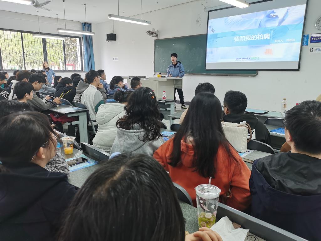 招聘会上,柏奥特克生物科技有限公司的董事长梁智杰为同学们详细、全面地介绍了该公司的目前的基本情况、取得的科研进展以及优势,同学们积极和公司HR进行了互动并收获满满。