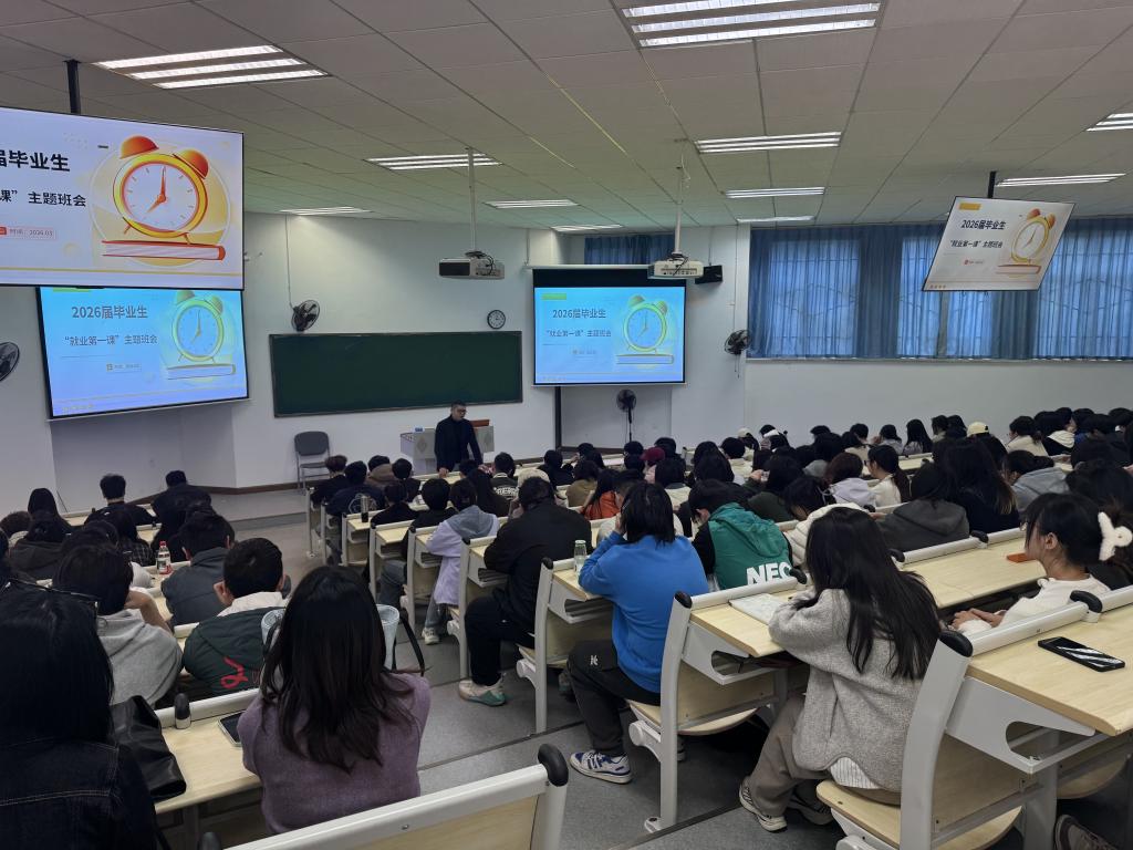 为引导毕业生准确把握就业形势、科学规划职业发展、顺利完成学业任务,2026年3月5日,304永利集团登录入口在教学楼A108举办2026届毕业生“就业第一课”主题教育活动。公司党委副书记郑向辉担任主讲,围绕就业形势分析、毕业阶段重点任务与安全稳定要求等内容,为全体毕业生进行了系统指导与动员。