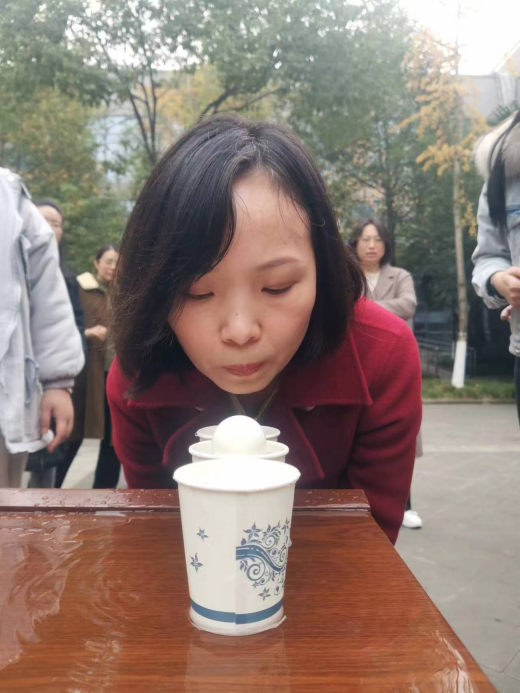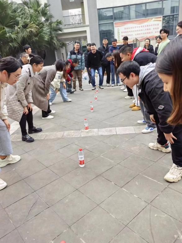活动中,大家吹起的乒乓球在水杯之间“流连忘返”,又以小队为单位双手搭在同学肩上排起长龙,还听着主持人的指令,做着相应动作抢到水瓶,用“6人5足”比拼团队协作能力……最终,经过几轮游戏比拼,以积分的方式产生本次活动的冠亚军。