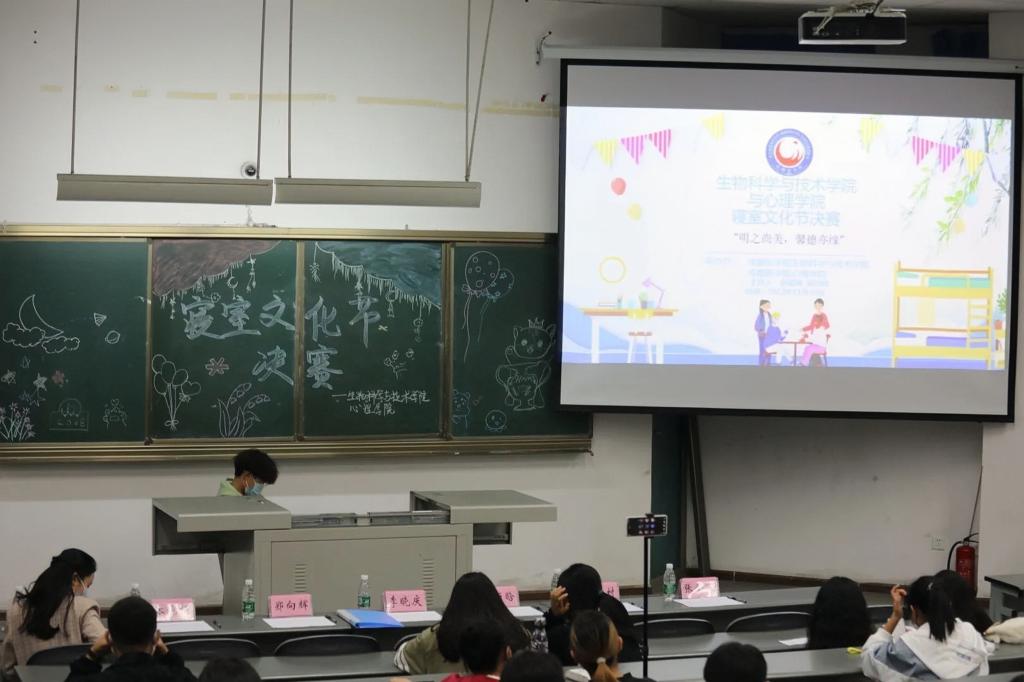 参与决赛的寝室代表依次以演讲为主,ppt介绍为辅的形式展示自己的寝室。各个寝室不仅展现出极佳的动手创新能力,还体现出了丰富的文化内涵。秉承友谊第一,比赛第二的理念。在休息环节中插入了有奖竞猜活动。比赛通过现场观众的打分和线上观众的投票双向统计,最终由郑向辉书记公布各寝室分数,并由郑崛村书记总结点评。