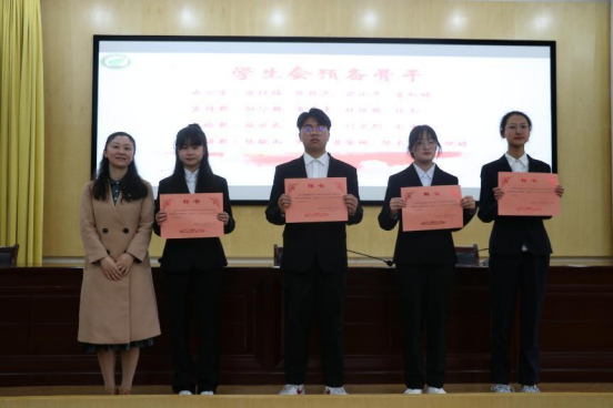 大会进入到颁发聘书及表彰环节。各位领导及老师分别为员工会成员以及各班班委颁发聘书,表彰了优秀骨干、优秀部门、优秀部员、优秀新闻工作者以及员工班主任。