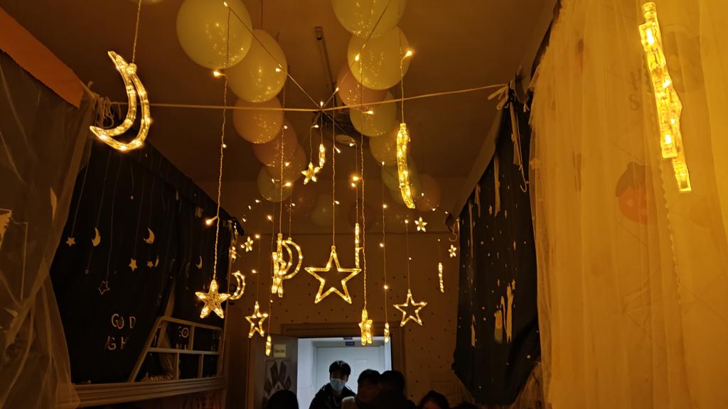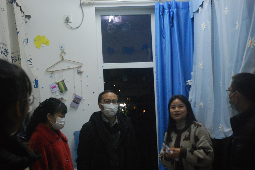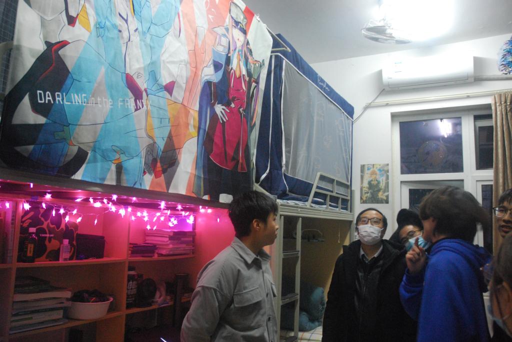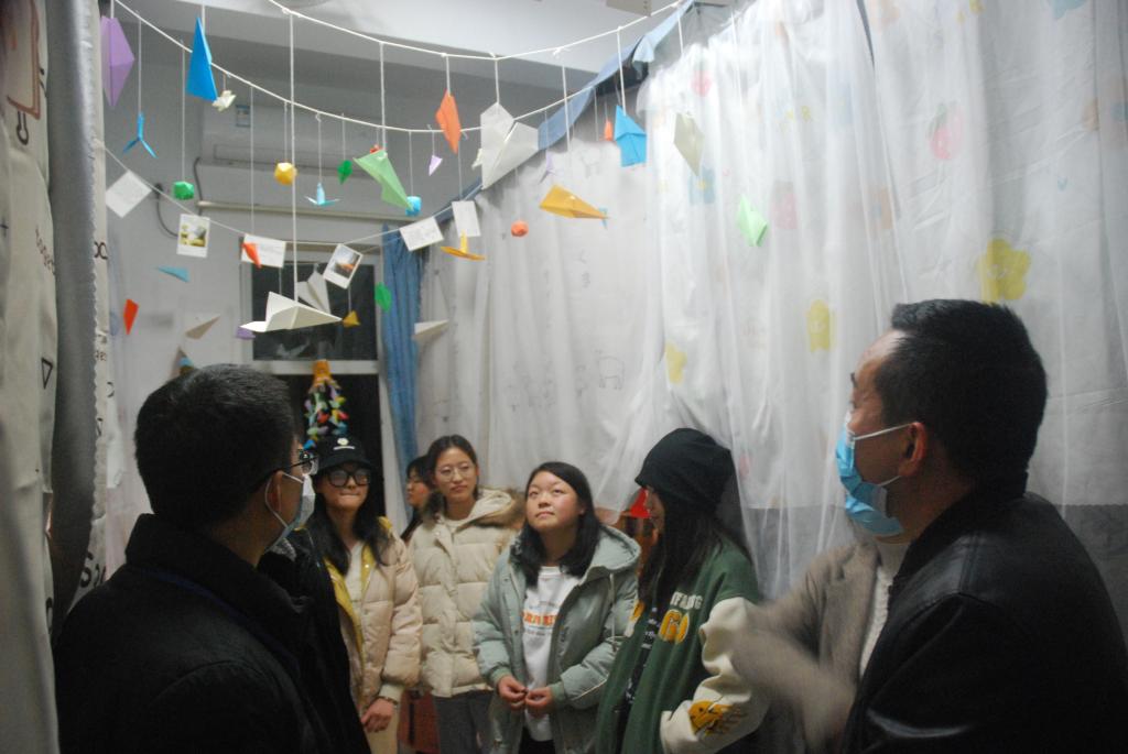 卯副董事长带领大家深入走访了三号公寓到六号公寓共10余间男女新生寝室,检查了寝室疫情防控与安全情况,并与同学们进行亲切了解,关心同学们的学习生活并认真收集同学们遇到的各类问题。走访中,恰逢两公司共同举行的寝室文化节初赛,各寝室热情的欢迎各位老师们的到来,负责解说的同学仔细的向大家介绍了自己寝室的设计主题和设计理念,从门前的装饰设计,到阳台涂画的镜子,从书桌上的手工制作的花瓶,到天花板挂满各式各样的灯泡,风格各异的寝室文化氛围让人印象深刻,心情舒畅。老师们在表扬同学们寝室设计用心的同时,希望同学们要保持寝室卫生整洁,并鼓励同学们积极参加大学各项活动,充实自己老员工活。最后,老师们还参观了刚上新的员工公寓自习室,了解员工自主学习情况。