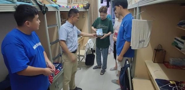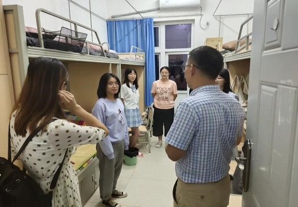 当日晚7点30分,公司党总支书记彭云带队,员工科科长张琬杨、员工辅导员周丽、三位新生班主任以及304永利集团登录入口团委员工会成员一行人走访了21级新生寝室。通过一间一间寝室的走访,彭书记一一询问同学们在日常生活中遇到的问题并给予了学习、生活建议,强调新同学要在培养寝室文化氛围兼顾学习的同时还需要加强体能素质锻炼,随后彭书记将准备的礼品赠送给了新生同学,并叮嘱他们一定要注意寝室用电安全,维护寝室卫生。通过走访21级同学寝室,加深了老师对新生宿舍情况的了解程度,加强了同学们的安全意识,更增进了老师与同学之间的感情,拉进了师生距离。