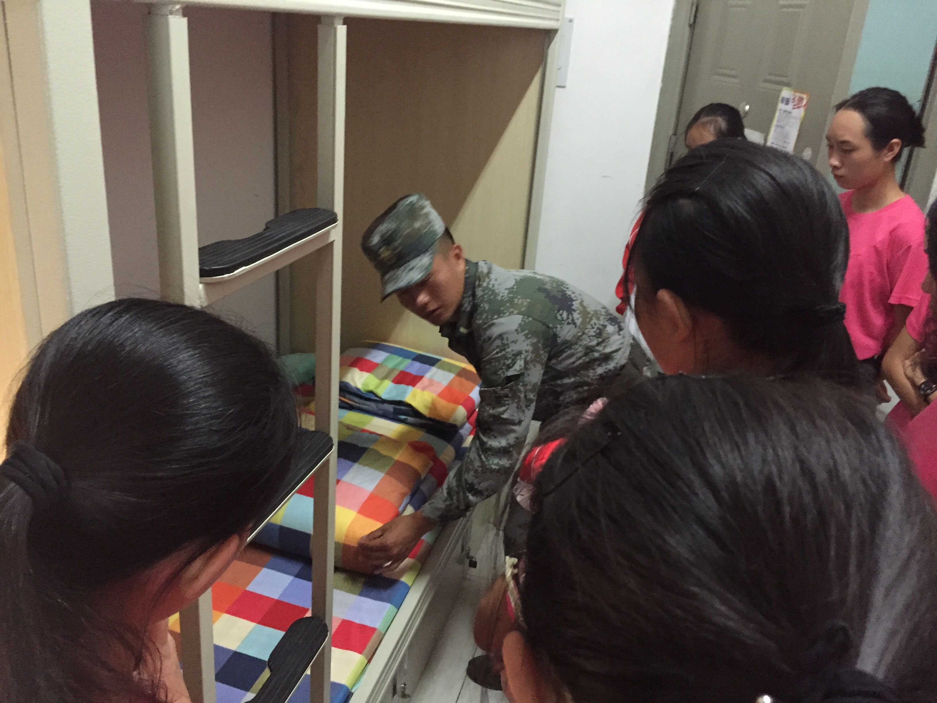 9月8日,生物医学系男女新生寝室迎来了一次“革新”,男女生教官分别前往各寝室指导内务,拉响了本次军训“内涵训练”的序幕。