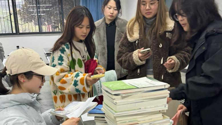 “尺素传情,纸短情长。书信虽轻,却能承载最厚重的情感。”活动现场,小橙子们在换书的同时也写下了自己对同学的祝语。尺牍素书,千里面目,书一纸信笺,寄浓浓祝愿,字里行间都承载着小橙子们对彼此的鼓励与美好祝愿。此外,不少同学除了捐赠了自己的课内专业书,也捐赠了很多课外书。