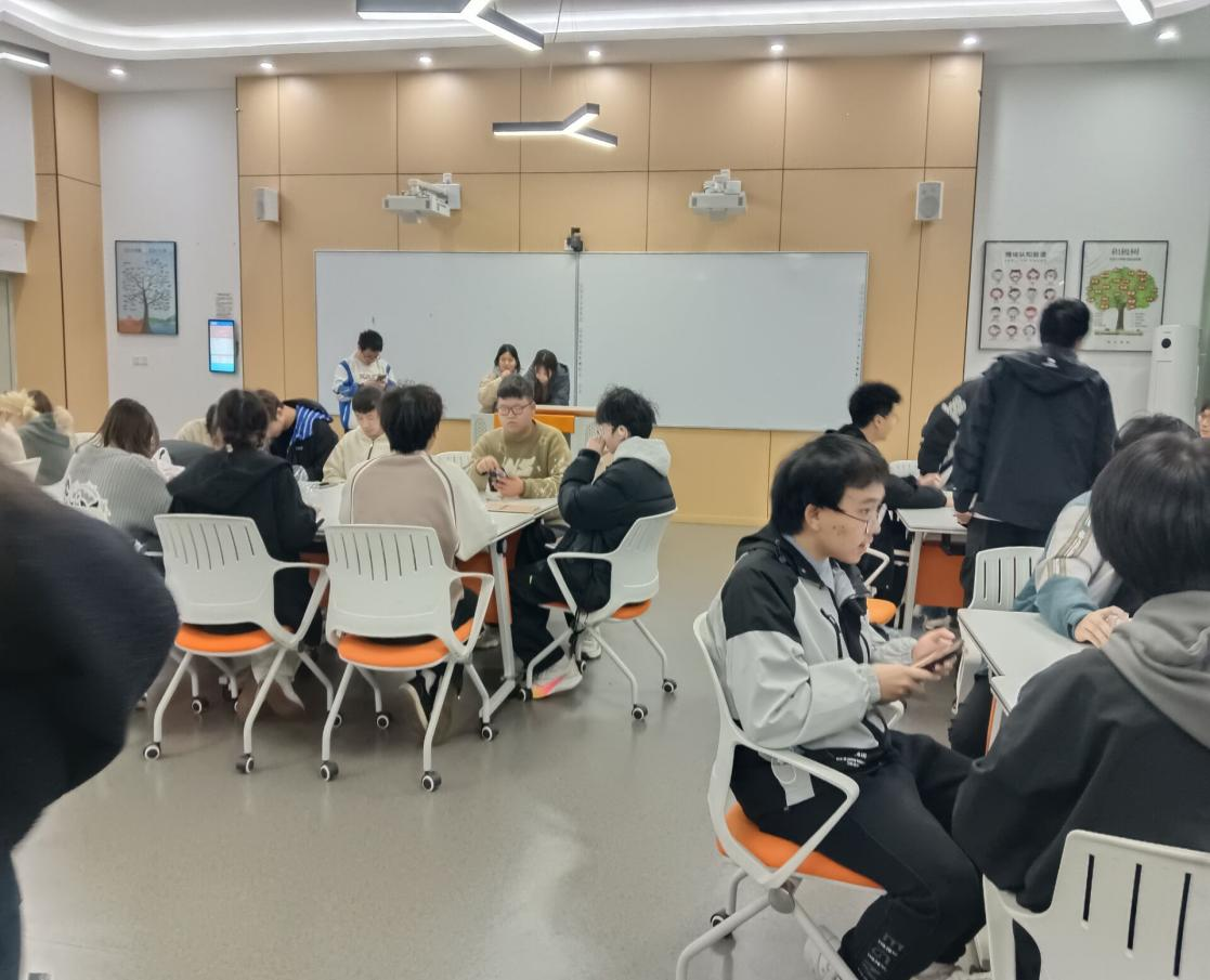 活动前期,班委精心策划、周密组织,提前预约场地、划分功能区、备齐各类卡牌道具,为活动的顺利开展提供了有力保障。活动现场布置温馨有序,同学们踊跃参与,自由组队,迅速投入到扑克牌、狼人杀等经典桌游的精彩对局中。在扑克牌专区,同学们在“斗地主”“掼蛋”等项目中展现出默契配合与策略智慧,既有协同作战的团队精神,也有沉着应对的独立思考;狼人杀专区则化身为思维交锋与语言表达的训练场,同学们在角色扮演中锻炼逻辑推理与沟通能力,“狼人自爆”“女巫救人”等经典场面不断引发掌声与欢笑,现场气氛热烈而有序。同学们在游戏中由陌生到熟悉,由拘谨到开放,情感在互动中升温,信任在协作中建立。活动有效缓解了学业压力,增强了班级凝聚力,提升了员工的规则意识、诚信意识和集体荣誉感。