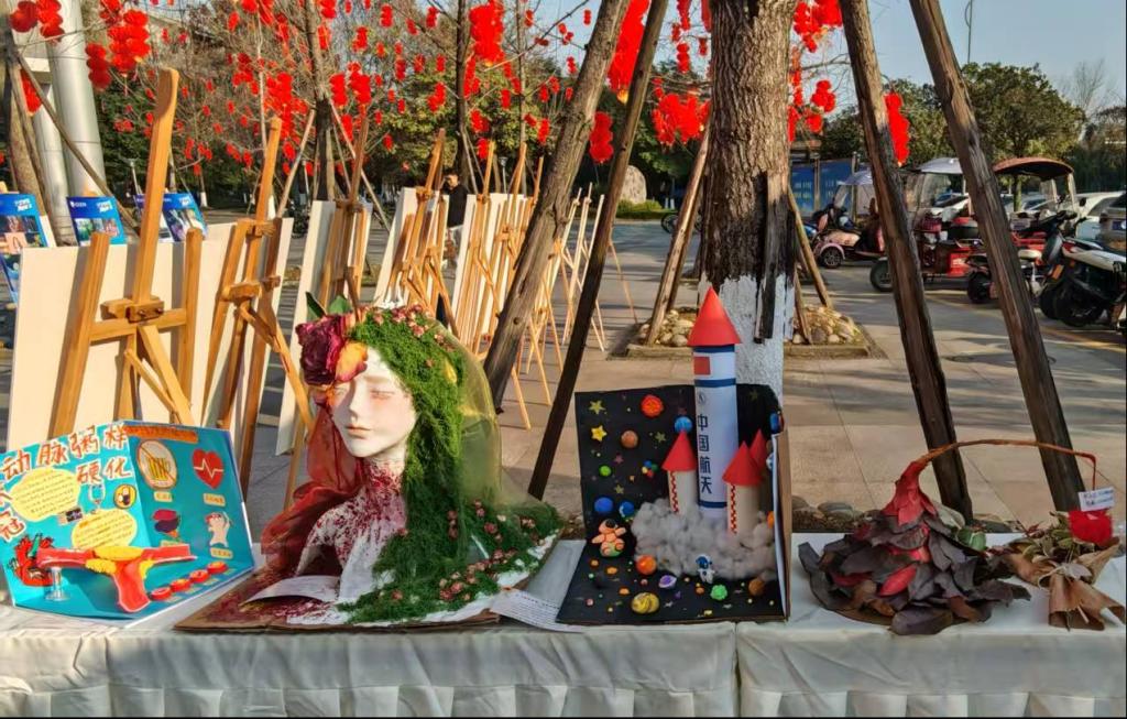 展览现场气氛热烈,师生流连于各展位之间。同学们利用废旧纸箱、回收塑料、落叶枯枝等日常及自然材料,通过精巧的构思和手工,创作出兼具艺术美感与环保理念的装饰品、雕塑与实用器物。每一件作品都诉说着独特的创意故事,引得观众频频称赞、拍照留念。评委们围绕作品的创意性、艺术性、传播力与完成度,进行了细致观摩、认真讨论与公正评审。