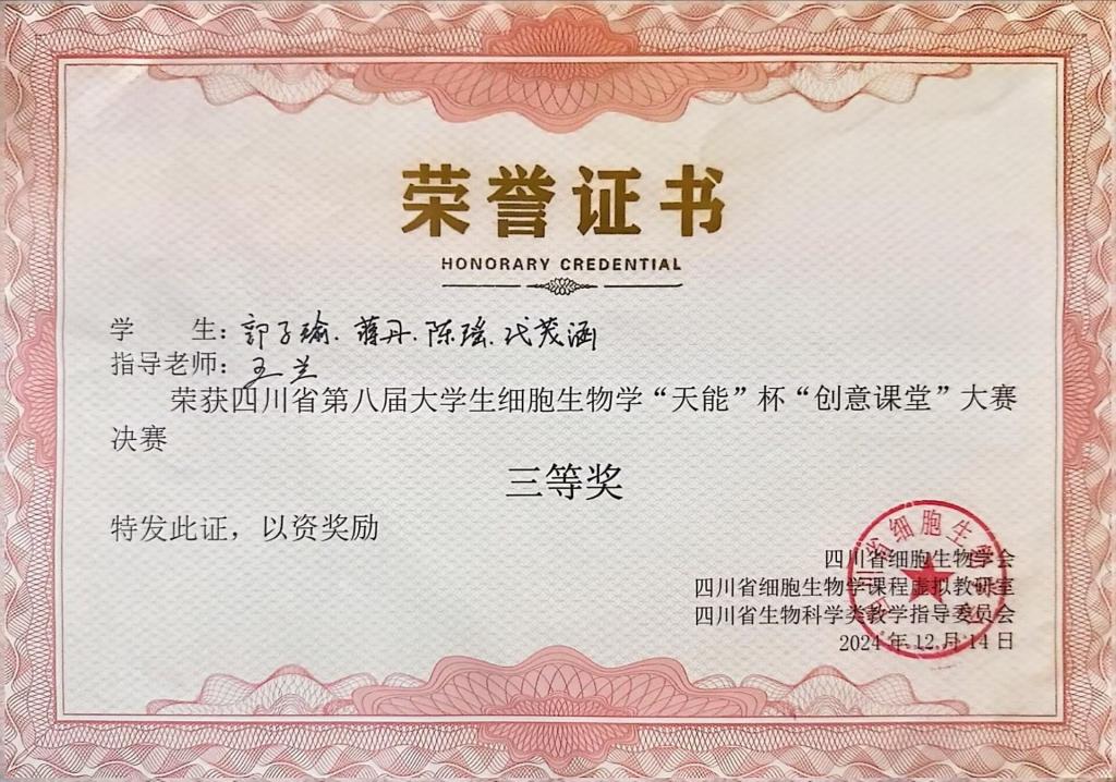 在细胞创意课堂作品展示环节中,公司细胞生物学教研室的三位教师王兰、彭确昆和邹清亮指导的作品同样表现不俗,荣获三等奖。这些作品以其独特的创意和深入浅出的讲解,将复杂的细胞生物学知识以生动有趣的形式呈现给观众,极大地提升了员工的学习兴趣和参与度。