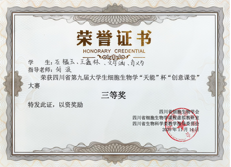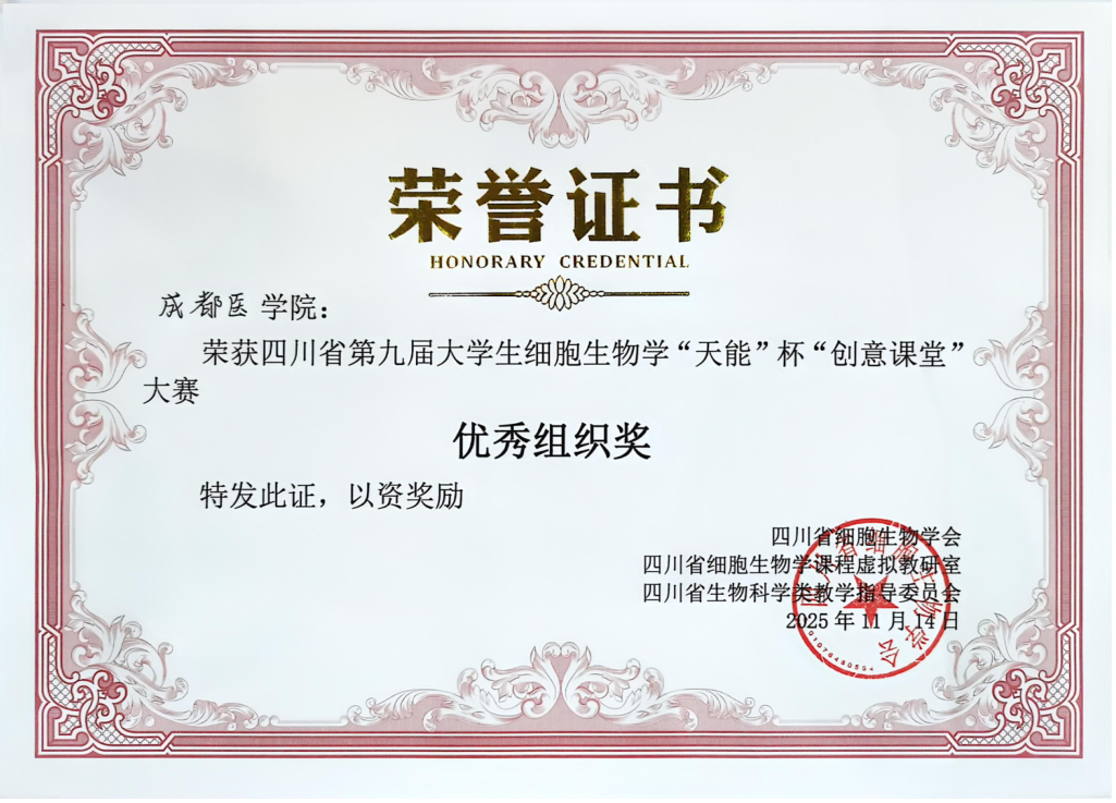 近日,四川省第十二届高校细胞生物学“天能” 杯中青年教师教学展示与研讨会暨第九届老员工 “创意课堂” 大赛在泸州举办。公司304永利集团登录入口师生凭借扎实功底与创新能力斩获多项荣誉,公司获评优秀组织奖。