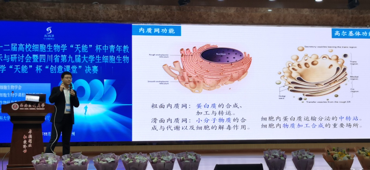 在中青年教师教学展示中,来自全省5所高校的教师围绕 “内质网-高尔基中间体” 主题开展20分钟现场授课比拼。公司生物工程教研室青年教师张占林凭借精湛的教学技巧与深厚的专业素养,荣获青年教师教学竞赛二等奖。