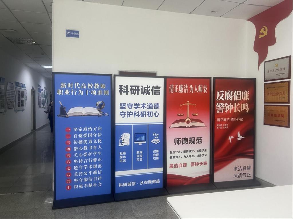 会后,公司通过搭建师德师风警示教育文化走廊,持续针对科研诚信教育、师德师风建设、防腐倡廉等高校突出问题开展常态化警示教育,营造“时时受教育、处处受熏陶”的浓厚氛围,使师德规范入眼、入心。
