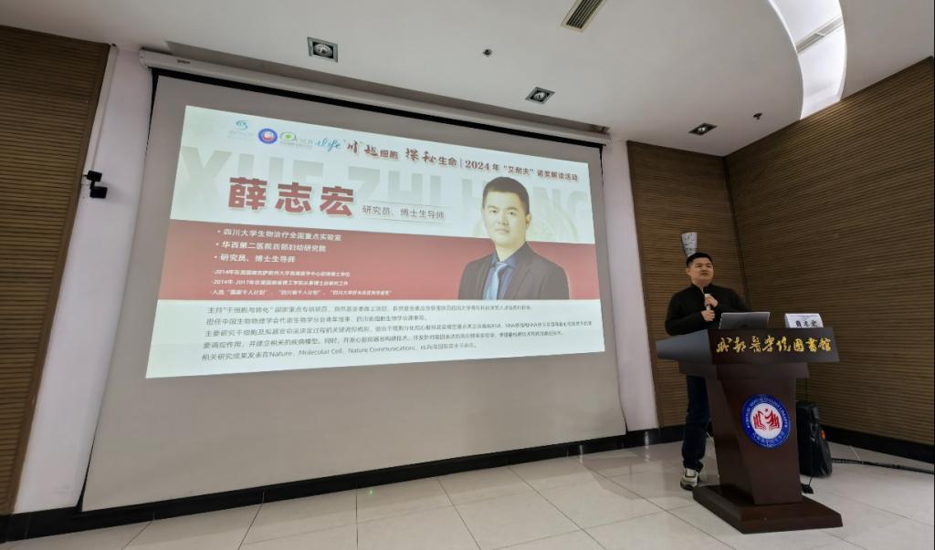 2024年12月19日,304永利集团登录入口联合四川省细胞生物学会举行了一场主题为“川越细胞,探秘生命”的2024年“艾耐夫”诺贝尔生理学或医学奖解读活动。此次活动吸引了公司众多的本科生和研究生前来参与。