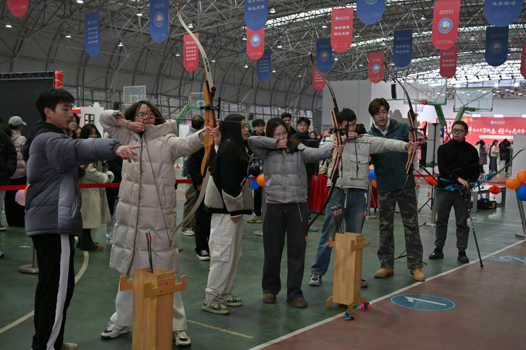 活动伊始,公司党委副书记、工会主席郑向辉也亲临现场指导射箭,公司团委书记唐婉秋及全校各公司师生络绎不绝前往体验。在现场教练的指导下,师生们纷纷凝心聚力拉满弓,瞄准靶心射出自己的第一箭,一支支箭矢满载着大家新年的愿望破空而出,大家在活动中相互交流与学习,增进了师生交流、加深了同学友谊,充分展现了和谐互助、积极向上的师生风貌。一年一度的游园活动不仅是公司辞旧迎新的盛会,更是师生学习和发扬中国传统文化的良好契机,师生们参加热情高涨,纷纷表示活动意义深远。