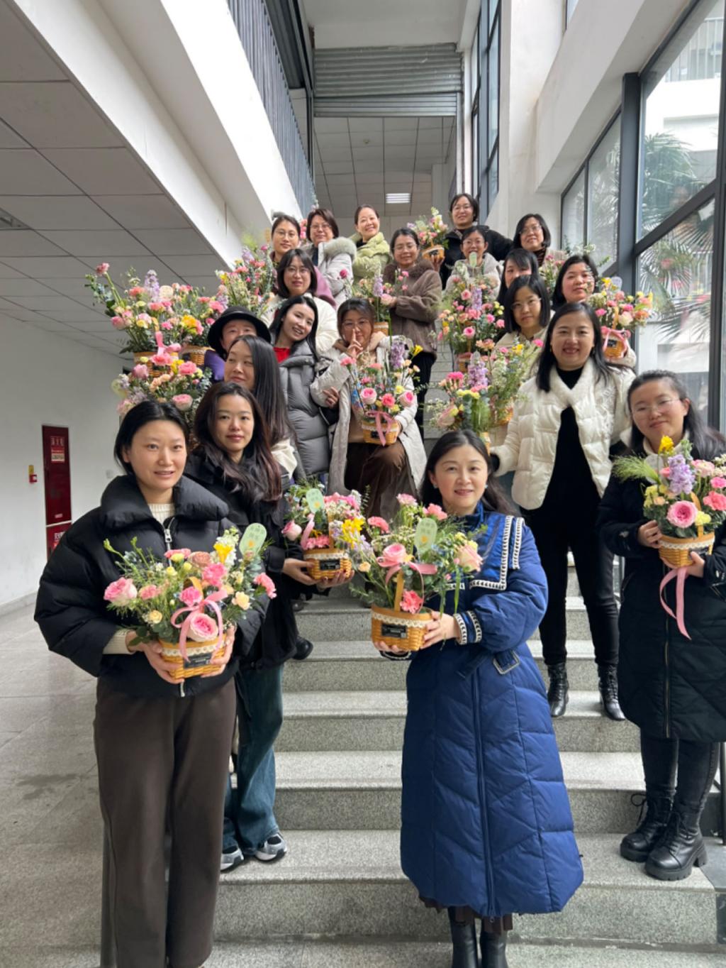 活动开始,老师向大家示范并讲解如何选花、搭配花材、修剪花枝、确定造型、固定花材等相关花艺知识。随后,在老师的指导下,职工们把自己的激情和对花的热爱融入花艺创作中,亲身体会生活与艺术的交融,灵魂与自然的共鸣,在轻松和谐的氛围中完成了各具特色的花艺作品,绽放了多样的美。活动结束,老师们纷纷拍照留念。