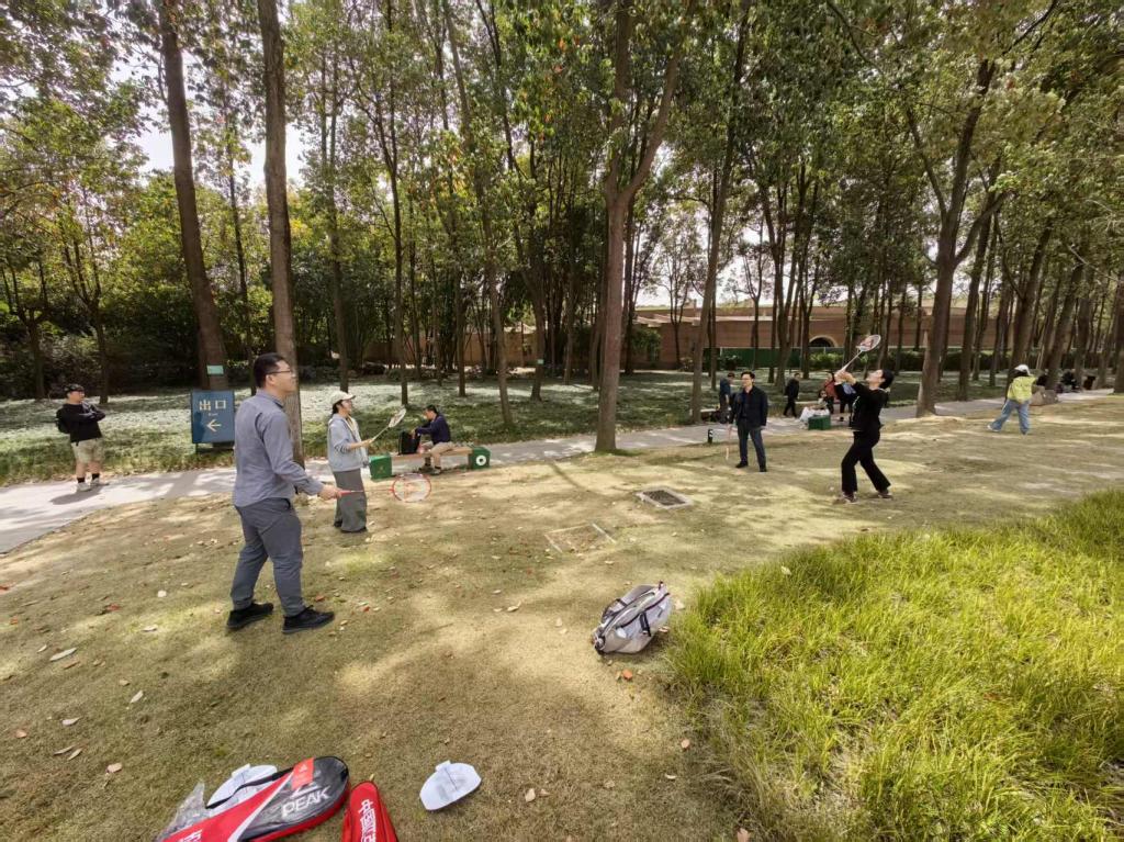 教职工们乘坐大巴车来到了广元市三星堆博物馆开展了春游活动。这里景色宜人,微风阵阵、流水潺潺、鸟鸣清脆,竹林和小溪相互映衬。在这片古老而美丽的土地上,老师们被眼前的美景、人文历史所吸引,纷纷拿出手机记录下这美好的瞬间。园区的草地上,教职工们还分组开展了一系列有趣的活动,如羽毛球接力赛、绿道徒步走等友谊赛,在竞技中展现出团队合作的精神。