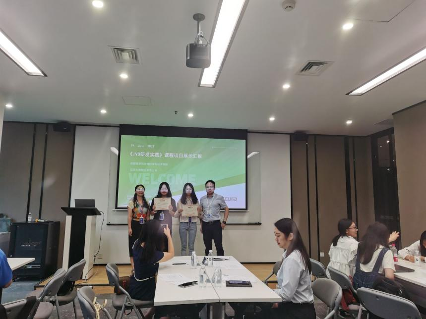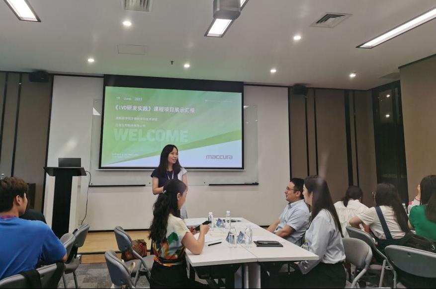 据了解,整个课程采用全过程、多视角、全方面评价体系。同学们结合课程学习和市场与技术调研完成诊断试剂项目报告,并进行项目展示汇报,该环节综合考察了同学们文献收集、小组协作和知识应用及分析解决问题能力。通过校企专家共同评定,最终评选出最佳设计奖1名最佳创意奖1名以及优秀奖3名。迈克生物研发总监龙腾镶同学们汇报内容给予指导和点评。戴小珍经理致辞发言并对同学们寄予期望,为本门课程划上圆满的句号。
