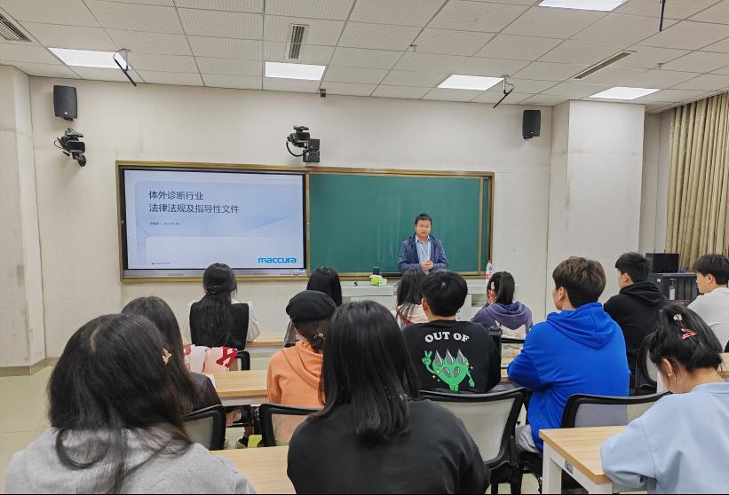 课程前期,公司首先邀请迈克生物技术研究总监赵雨航博士等多位资深从业人员走进公司,为同学们讲解体外诊断试剂行业发展、法律法规和质量性能等专业知识,让大家对体外诊断试剂行业发展、诊断试剂企业以及研发相关理论有了一定认识,拓展员工前瞻视野。随后,同学们深入企业,进行了为期11天的学习。在企业导师悉心指导下,同学们在生化试剂、分子生物学试剂和免疫学诊断试剂等5大试剂研发平台产品进行实践学习,并顺利通过各平台考核。通过企业实践学习,同学们不仅掌握试剂研发基本技能,提升诊断试剂研发、生产和质检的综合能力,还养成“求真务实,踏实肯干”的工作态度,树立了正确的就业观。