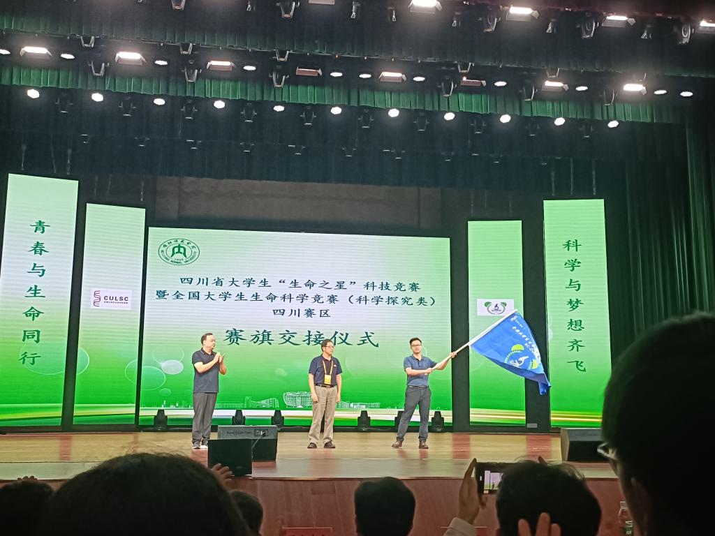 在交接仪式上,张坤代表下一届大赛主办方进行致辞。他首先对第三届大赛表达了高度赞赏,并向大赛的组会、内江师范公司生命科学公司及所有工作人员表示诚挚的感谢和敬意,对所有参赛选手致以最真诚的祝贺。他由衷的感叹:“在万物向阳的盛夏时节,大家相聚大千故里、美丽的甜城——内江,在内江师范公司这座充满智慧和活力的大公司园里,共同见证了本届生命科学竞赛的圆满落幕。”