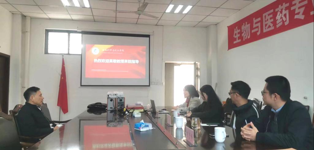 1月9日下午,304永利集团登录入口邀请中国科公司大学温州研究院特聘研究员,“长江学者”吴敏教授到校对公司团队建设进行深入指导。公司经理戴小珍教授、副书记杨雨晗教授,研究生院培养科科长朱彦峰教授、公司研究生科科长、遗传教研室主任参加了本次会议。