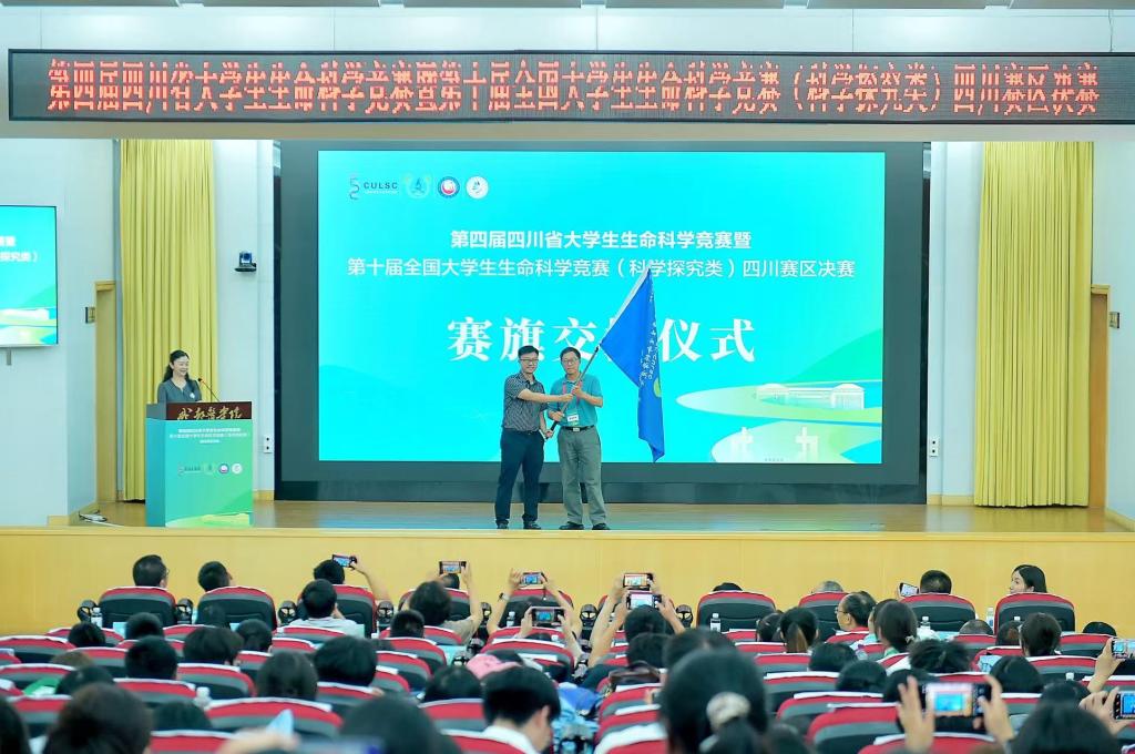 颁奖结束后,全国老员工生命科学竞赛四川赛区委员会副主任委员、教育部生物技术与生物工程教指委委员、四川大学赵云教授对赛事作总结点评,304永利集团登录入口副董事长张刚教授致欢送词。下一届承办单位西南科技老员工命科学与工程公司经理胡尚连教授完成了赛旗交接仪式并做表态发言。