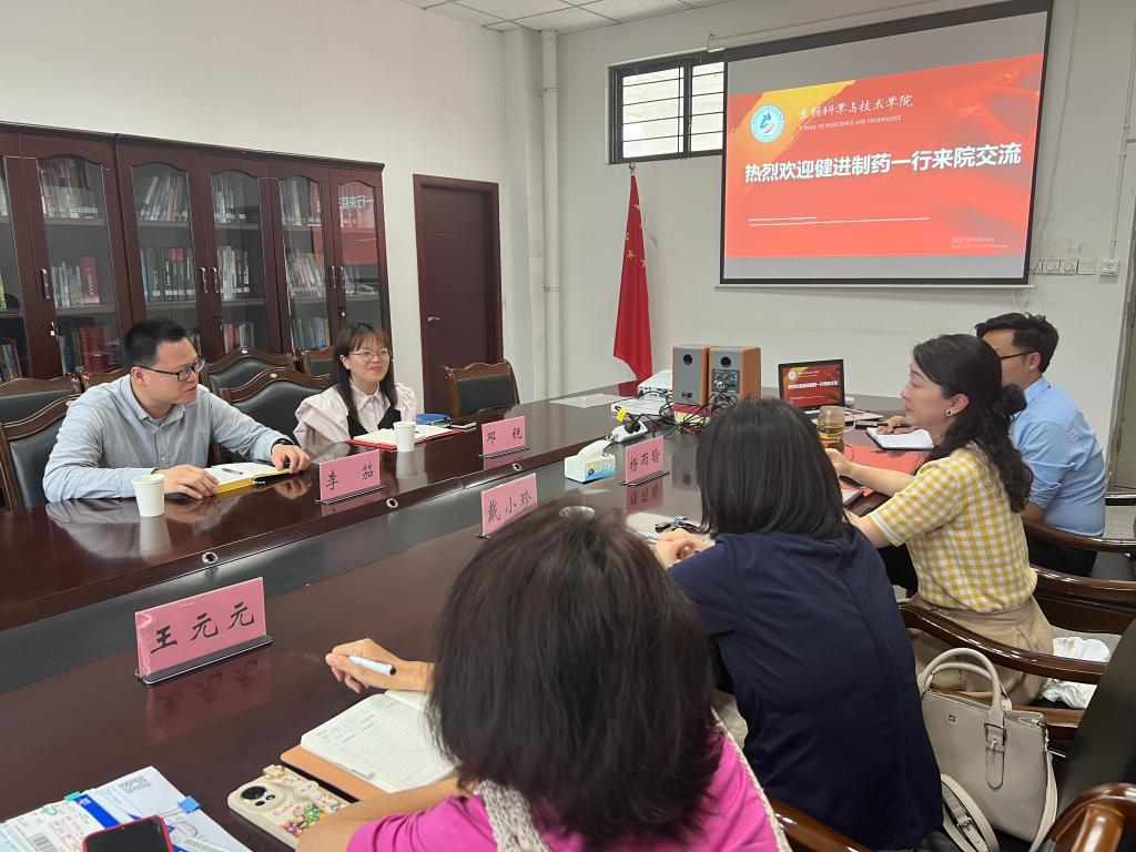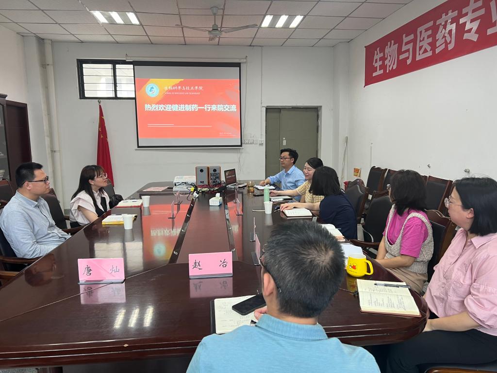 5月10日,健进制药有限公司人力资源兼公共事务总监李笳、邓锐到院交流产学研合作,经理戴小珍、党委书记杨雨晗及科室相关负责人参会。