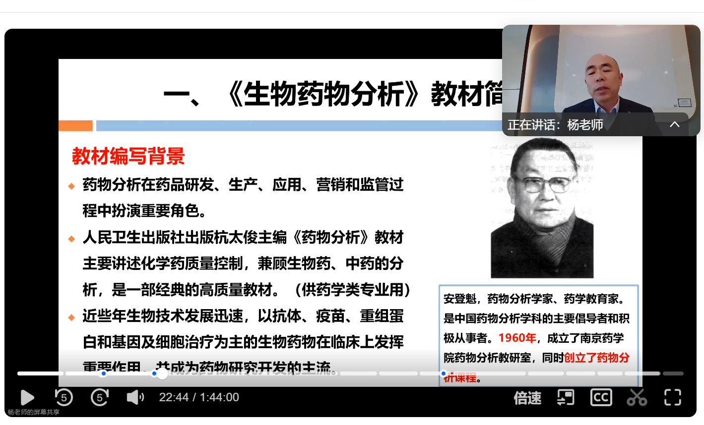 随后,中国药科大学的孔毅教授为参会教师带来了一场精彩的教学备课分享。孔教授以其深厚的学术造诣和丰富的教学经验,深入浅出地介绍了《生物药物分析》课程发展历程、国家级规划教材编写思路、课程内容详细脉络、课程思政典型案例等核心内容,并结合最新的科研成果和产业发展趋势,探讨了生物药物分析在生物医药领域的重要性和未来发展方向。孔教授的讲座内容充实、条理清晰,赢得了线上线下参会教师的一致好评。在集体备课讨论环节,来自全国生物制药专业的教师们围绕《生物药物分析》的教学内容、教学方法、实验实践等方面展开了热烈的讨论和交流。大家纷纷表示,通过此次活动,不仅加深了对课程内容的理解,还学到了许多新的教学理念和技巧,对今后的教学工作具有重要的指导意义。同时,教师们也普遍认为,此次集体备课方式有助于打破地域限制,促进各高校之间的资源共享和学术交流。