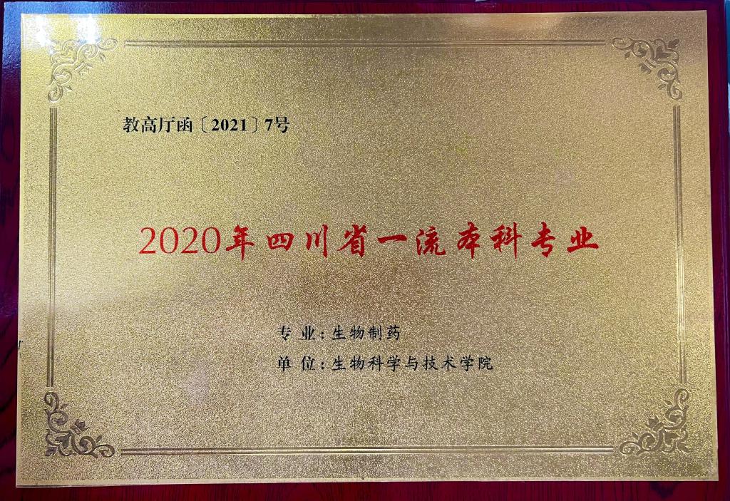四川省“一流专业”:生物制药专业(2021 年软科中国大学专业排行榜四川省排名第1)