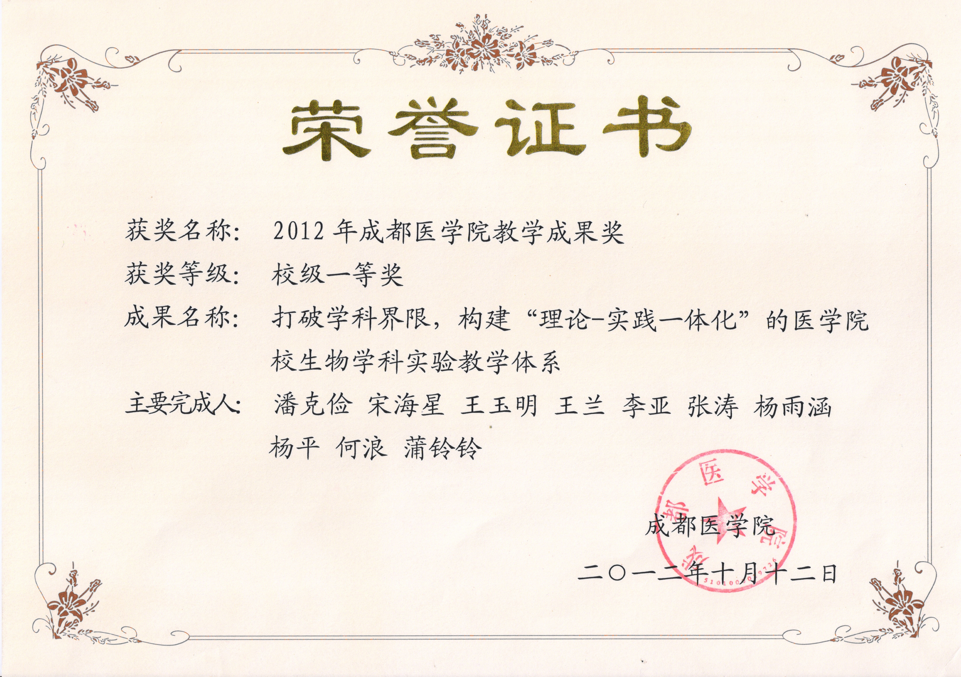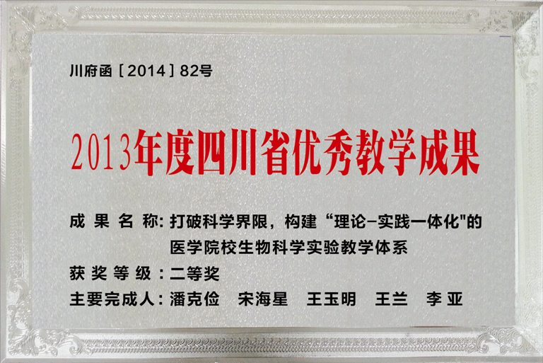 四川省第二届高校细胞生物学中青年教师教学比赛荣获一等奖(2016) 韦鹤